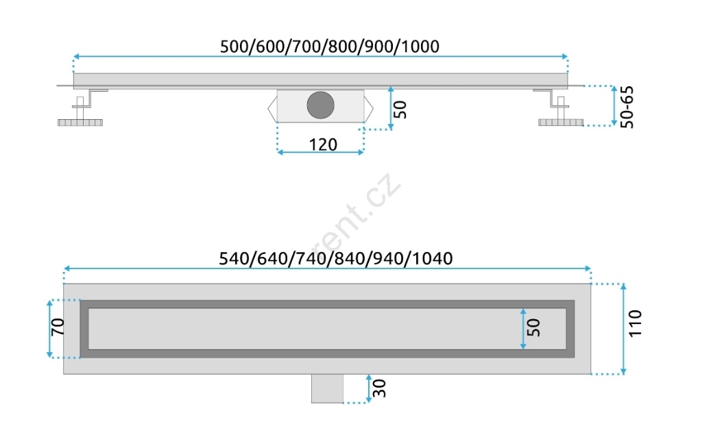 • Liniový odtok o délce 60 cm v dekoru nerezové barvy.