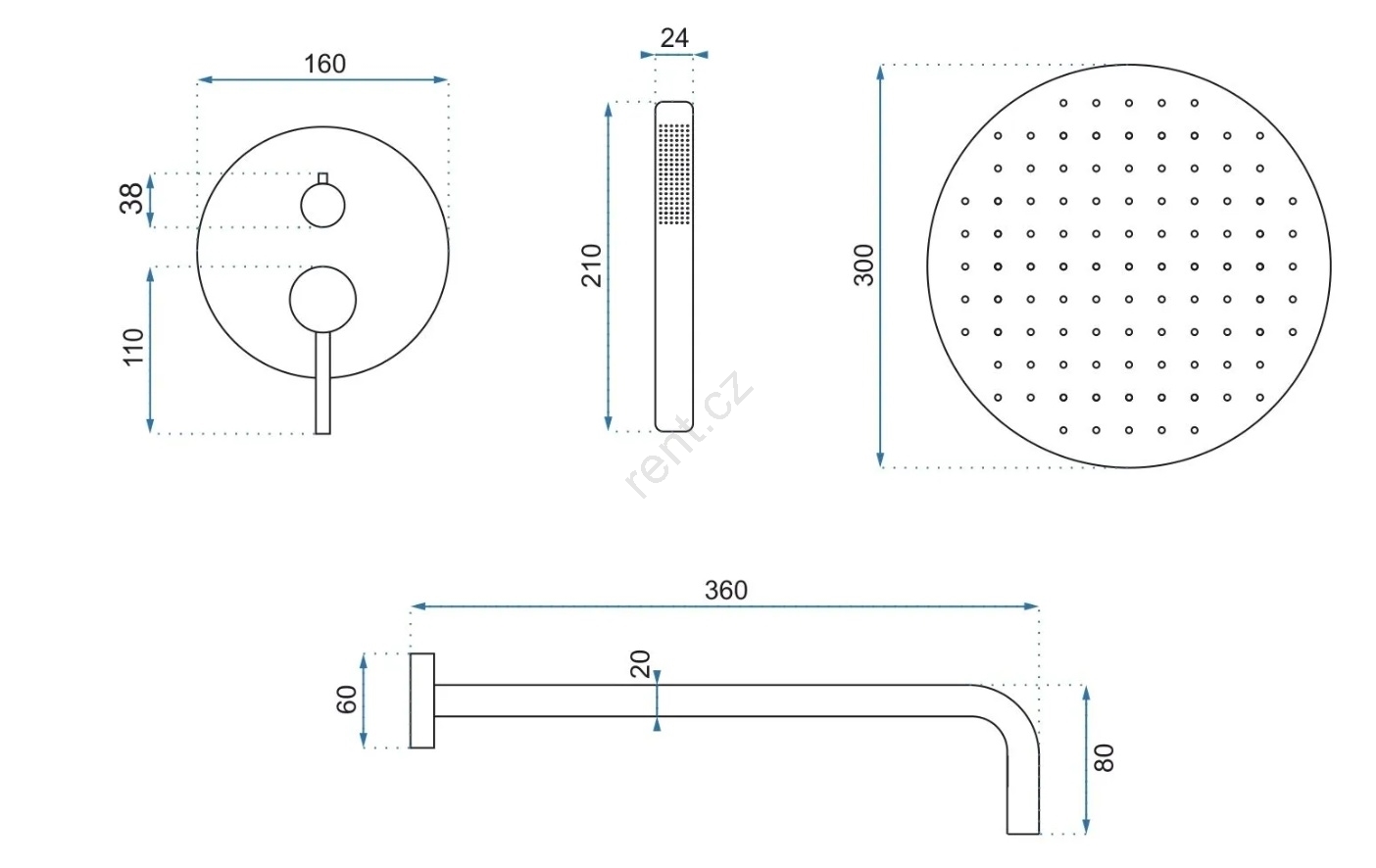 • Balení obsahuje: podomítkový box, kompletní baterie, rameno, ruční a hlavová sprcha, držák ruční sprchy, 150cm hadice.