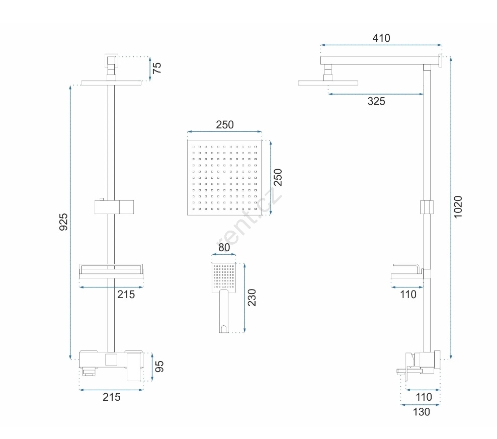 • Balení obsahuje: ruční a hlavová sprcha, držák ruční sprchy, mýdlenka, baterie s kartuší a 150cm hadice.