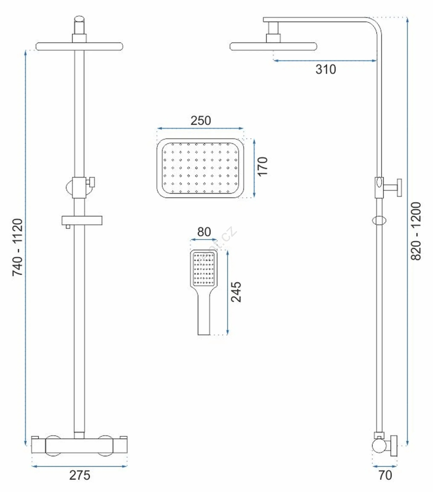 • Nastavení sprchové tyče: 82 - 120 cm.