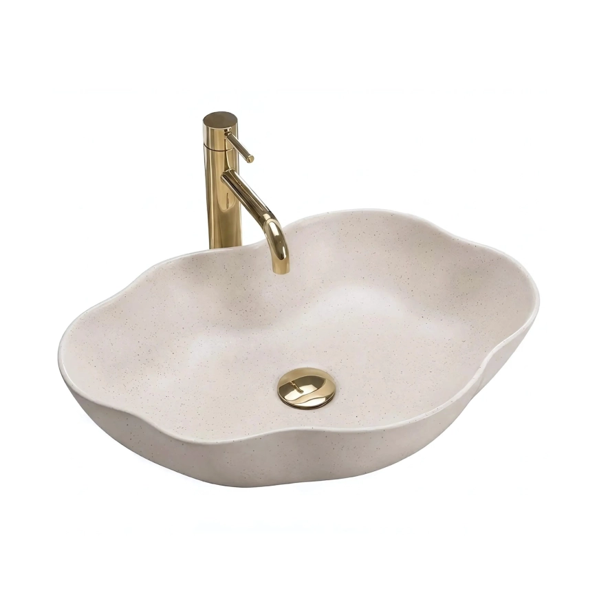 • REA-U0617 - Umyvadlo na desku PEARL 38x50,5 cm keramika/béžová/imitace kamene