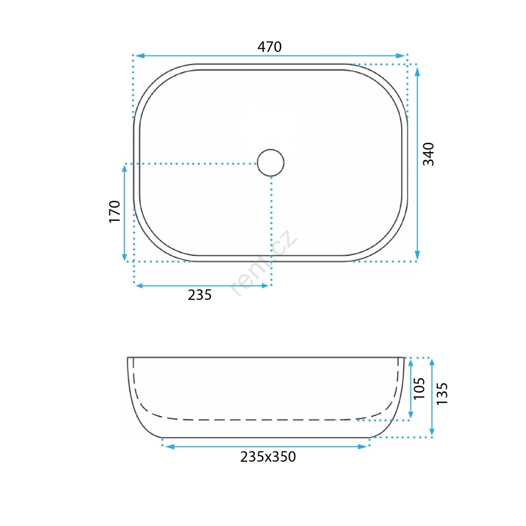 • REA-U3323 - Umyvadlo na desku BELINDA 33,5x46,5 cm keramika/imitace kamene