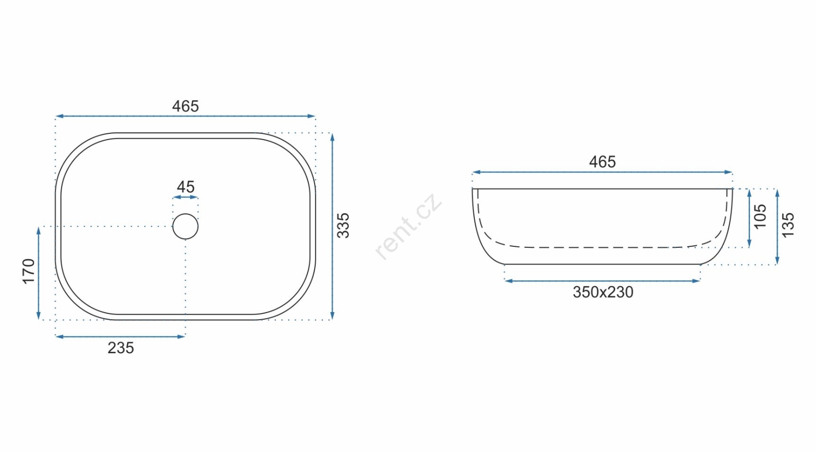 • REA-U3323 - Umyvadlo na desku BELINDA 33,5x46,5 cm keramika/imitace kamene