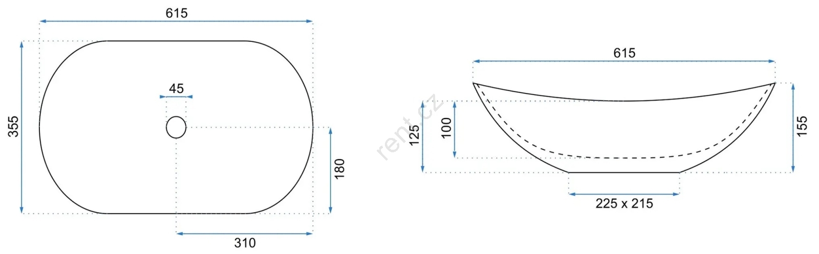 • REA-U6373 - Umyvadlo na desku ROYAL 35,5x61,5 cm keramika/modrá
