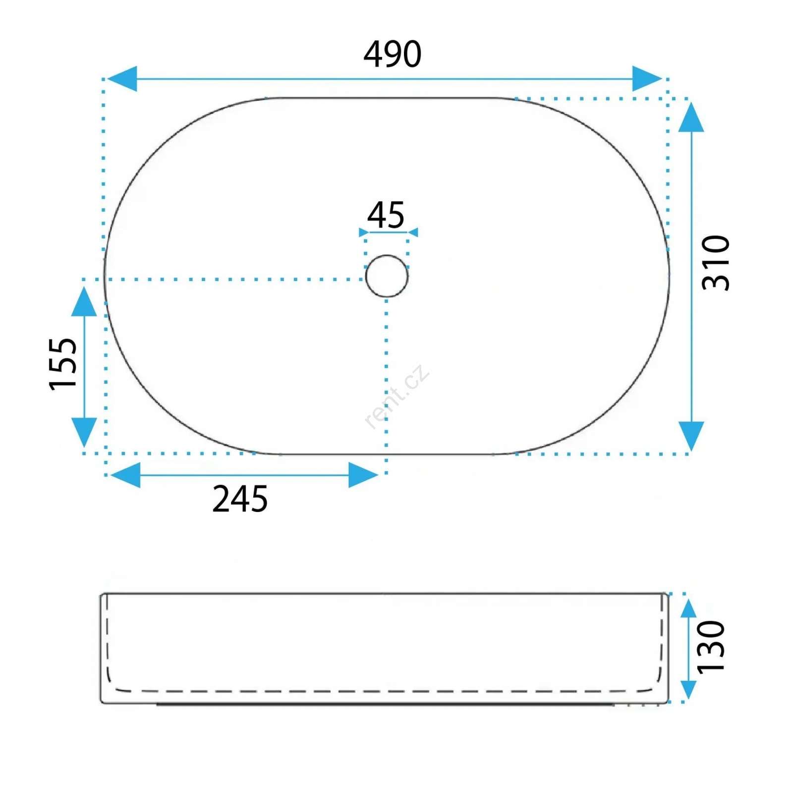 • REA-U6375 - Umyvadlo na desku VANDA 31x49 cm keramika/matná modrá
