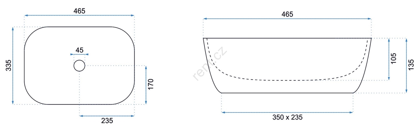 • REA-U3323 - Umyvadlo na desku BELINDA 33,5x46,5 cm keramika/imitace kamene