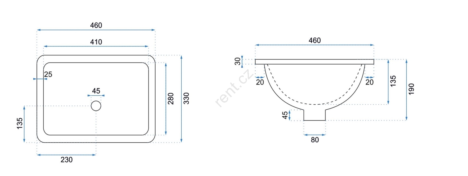• Moderní a elegantní zápustné umyvadlo s přepadem.