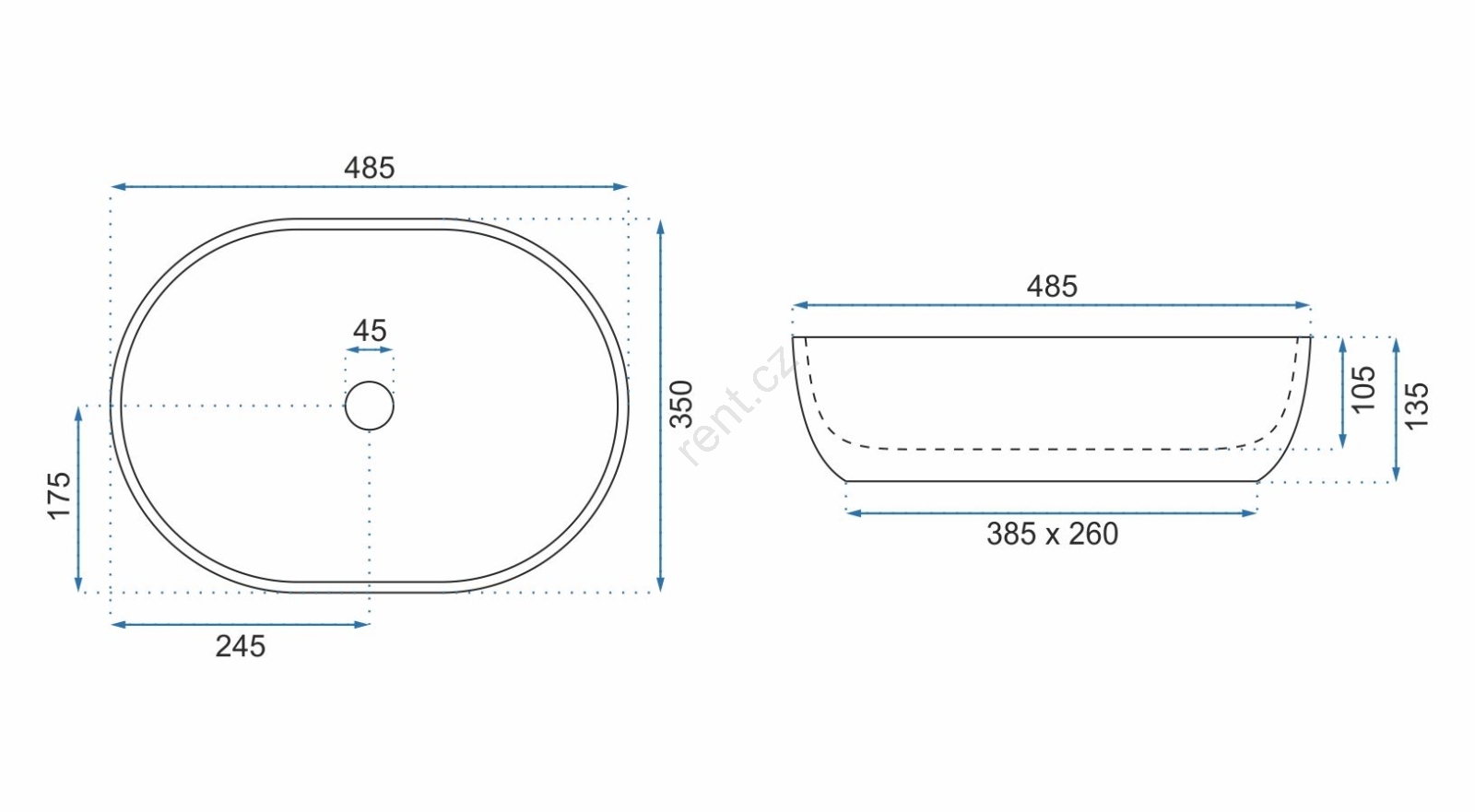 REA-U9888  - Umyvadlo na desku LARA 35x48,5 cm keramika/imitace kamene