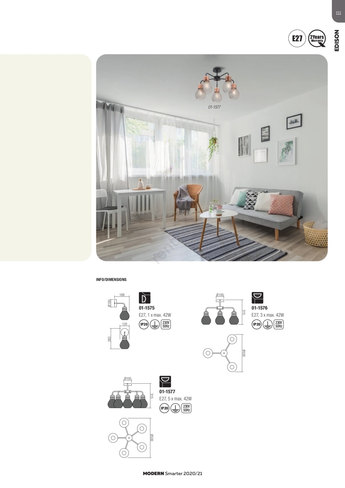 Redo 01-1577 - Lustr na tyči EDISON 5xE27/42W/230V pr. 53 cm černá/měděná charakterizuje pěkný design a funkční provedení.  Do svítidla je určena žárovka s paticí E27. Zde si můžete koupit další žárovky za výhodnou cenu. Získáte tak zajímavý doplněk do svého domova.