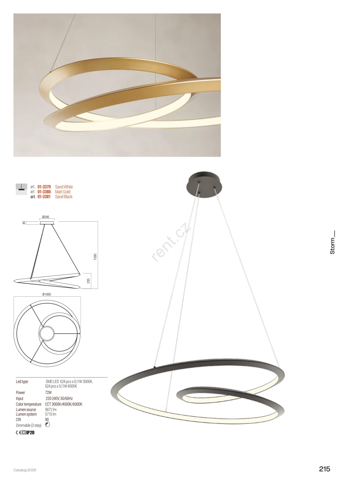 • Redo 01-3377 - LED Stmívatelný lustr na lanku STORM LED/60W/230V 3000/4000/6000K CRI 90 pr. 80 cm zlatá