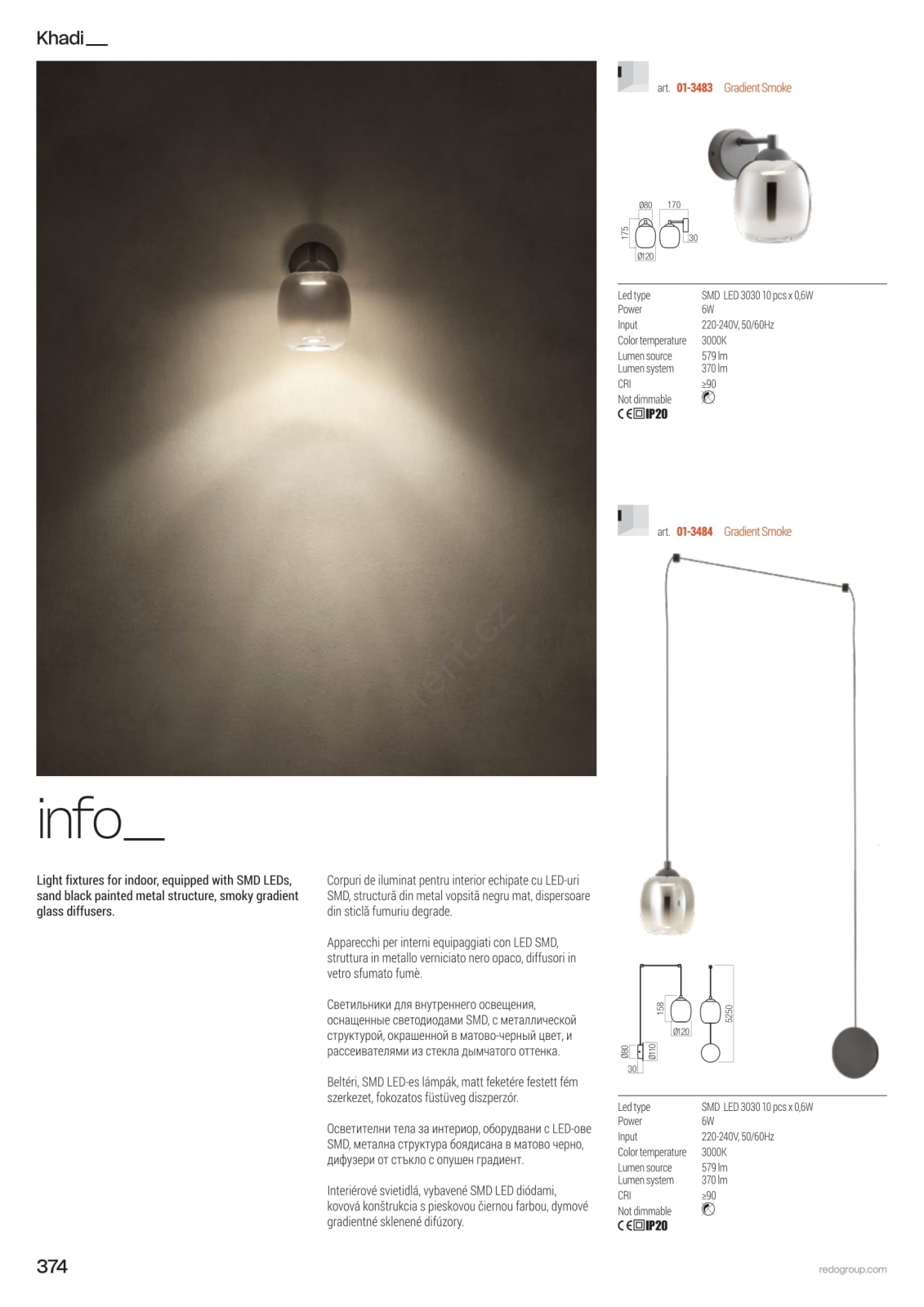 Redo 01-3490 - LED Stmívatelný lustr na lanku KHADI 5xLED/5,2W/230V CRI 90 černá/kouřová