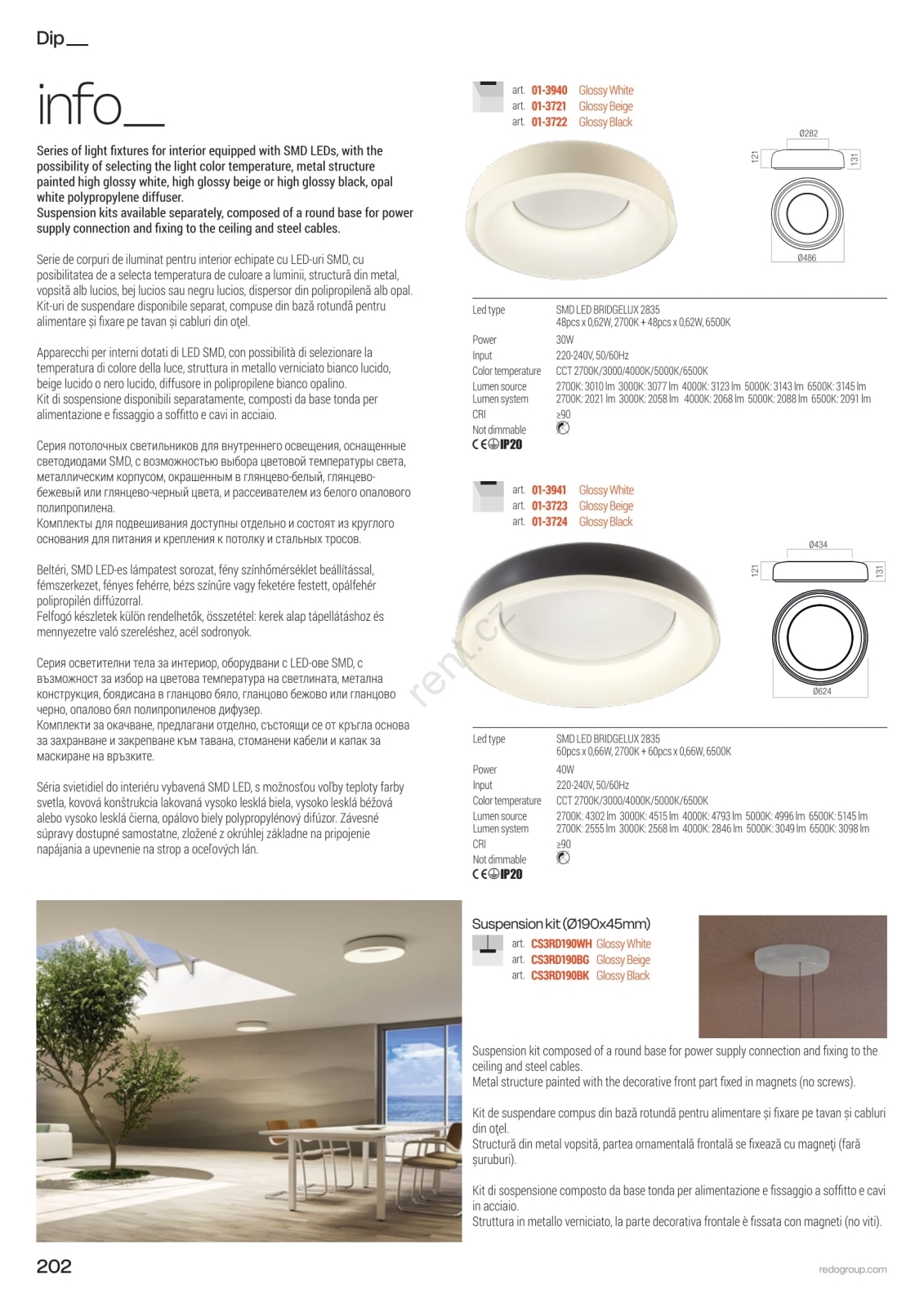 • Redo 01-3723 - LED Stropní svítidlo DIP LED/40W/230V 2700/3000/4000/5000/6500K CRI 90 pr. 62,4 cm béžová