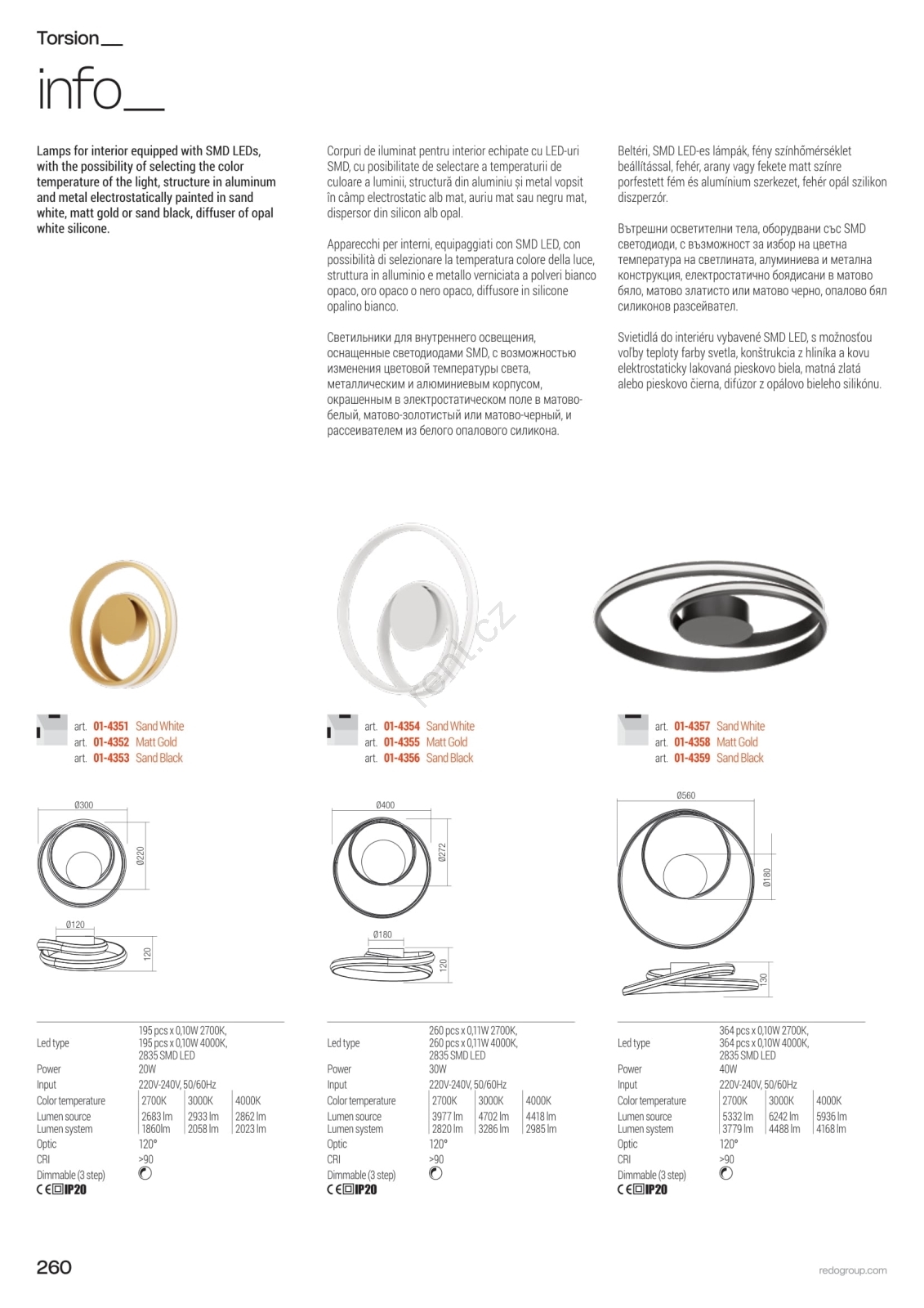 • Redo 01-4364 - LED Stmívatelný lustr na lanku TORSION LED/60W/230V 2700/3000/4000K CRI 90 pr. 75,2 cm zlatá