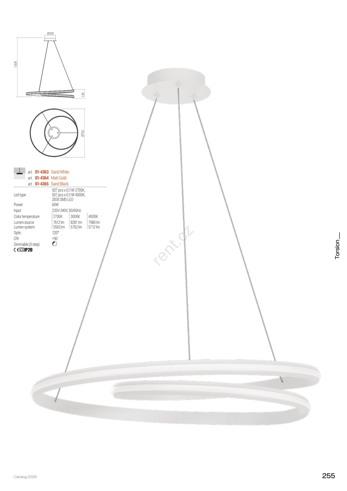 • Redo 01-4363 - LED Stmívatelný lustr na lanku TORSION LED/60W/230V 2700/3000/4000K CRI 90 pr. 75,2 cm bílá