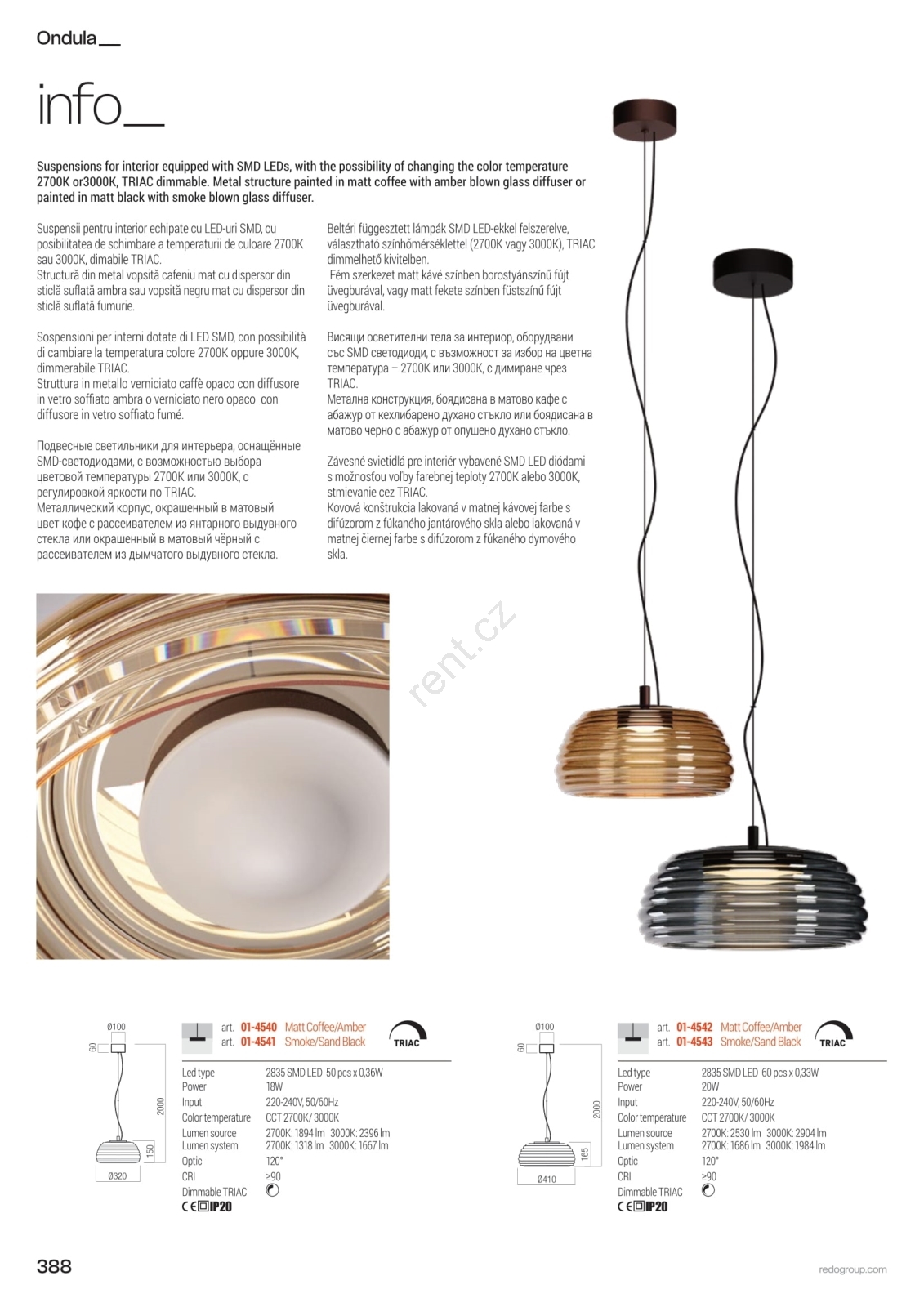 • Redo 01-4540 - LED Stmívatelný lustr na lanku ONDULA LED/12W/230V 2700K/3000K CRI 90 pr. 32 cm béžová/kouřová