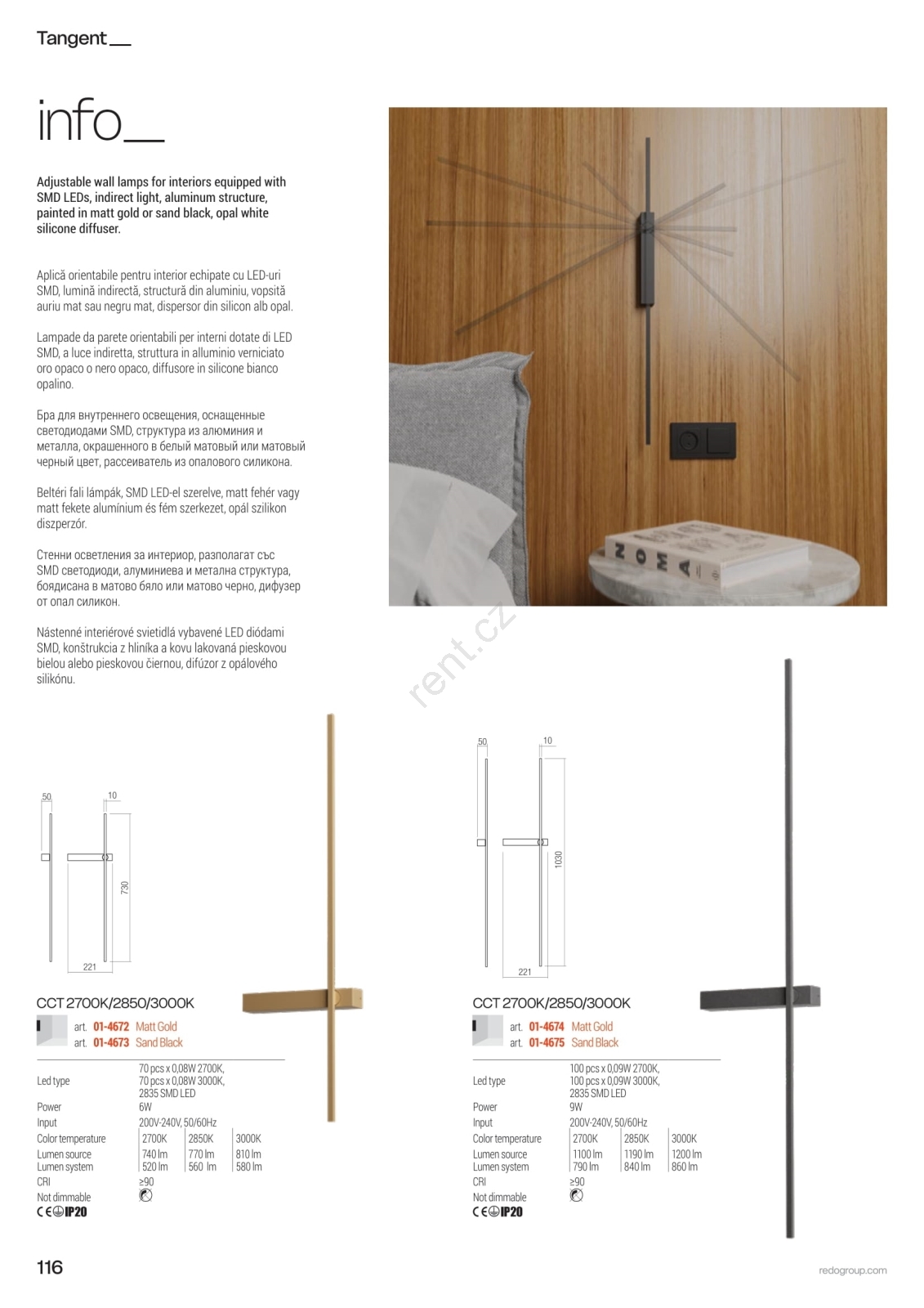 • Redo 01-4674 - LED Nástěnné svítidlo TANGENT LED/9W/230V 2700/2850/3000K CRI 90 zlatá