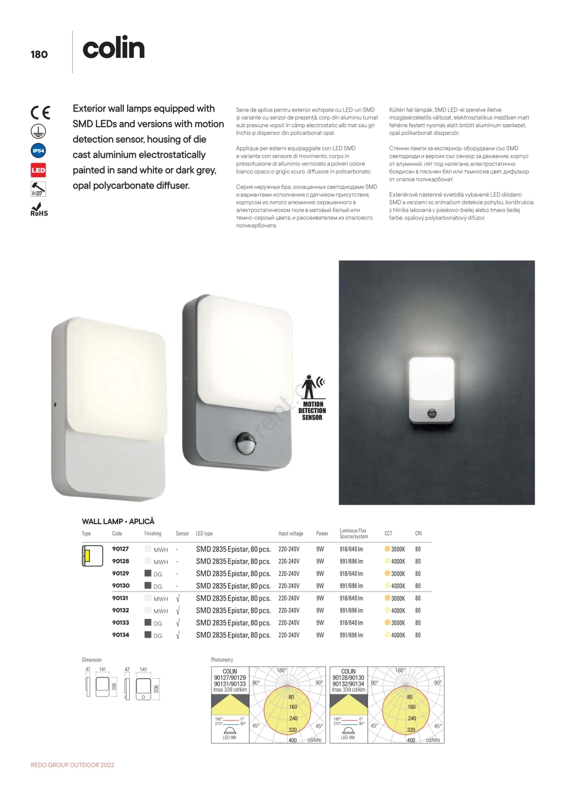• Redo 90133 - LED Venkovní nástěnné svítidlo se senzorem pohybu a soumraku COLIN LED/9W/230V 3000K IP54 antracit
