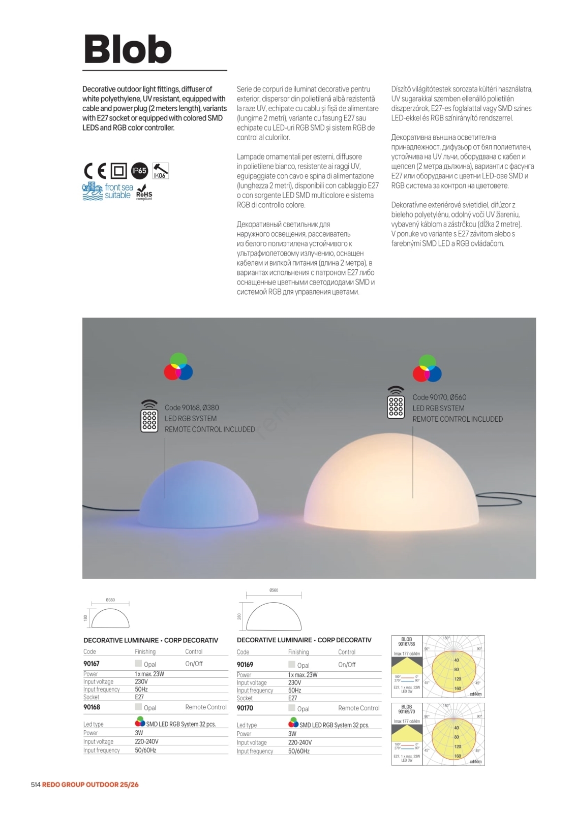 Redo 90169 - Venkovní lampa BLOB 1xE27/23W/230V pr. 56 cm IP65 bílá charakterizuje pěkný design a funkční provedení.  Do svítidla je určena žárovka s paticí E27. Zde si můžete koupit další žárovky za výhodnou cenu. Získáte tak zajímavý doplněk do svého domova.