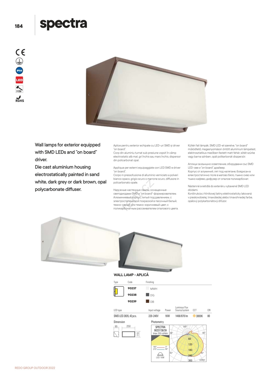 • Redo 90237 - LED Venkovní nástěnné svítidlo SPECTRA LED/16W/230V 3000K IP54 bílá
