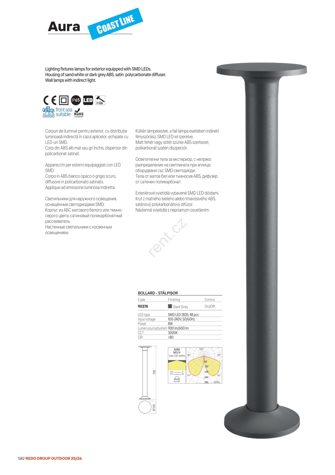 Redo 90374 - LED Venkovní lampa AURA LED/8W/230V 3000K 70 cm IP65 antracit