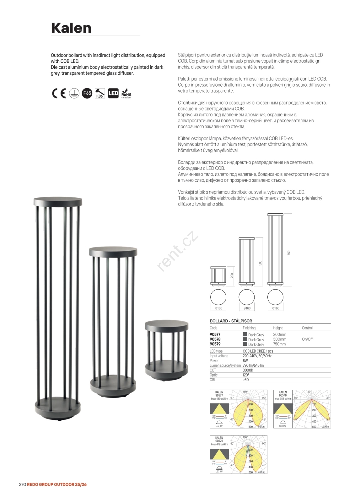 Redo 90577 - LED Venkovní lampa KALEN LED/8W/230V 3000K 20 cm IP65 antracit