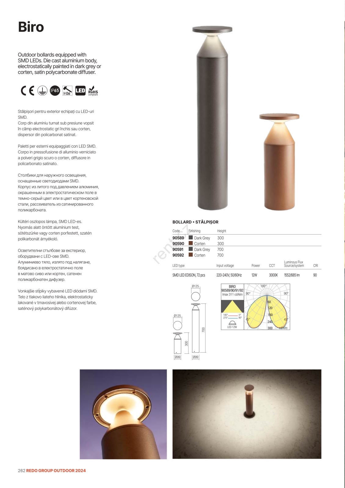 • Redo 90589 - LED Venkovní lampa BIRO LED/12W/230V 3000K 30 cm CRI 90 IP65 antracit