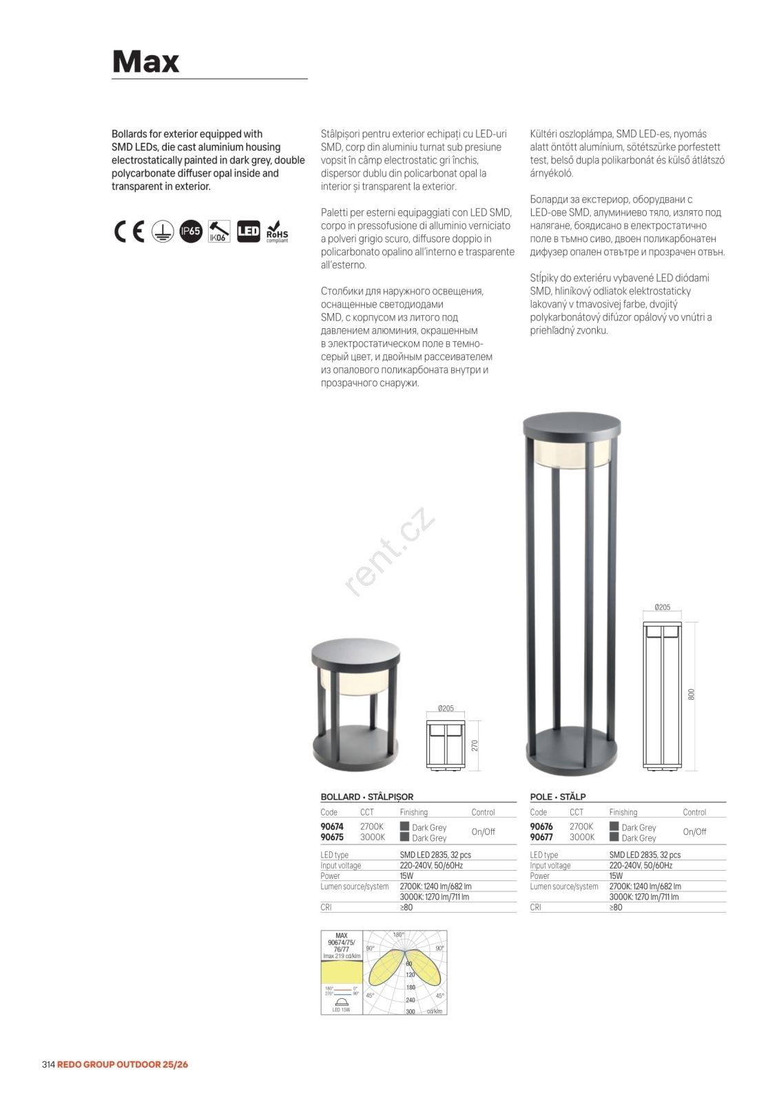 • Redo 90676 - LED Venkovní lampa MAX LED/15W/230V 2700K 80 cm IP65 antracit