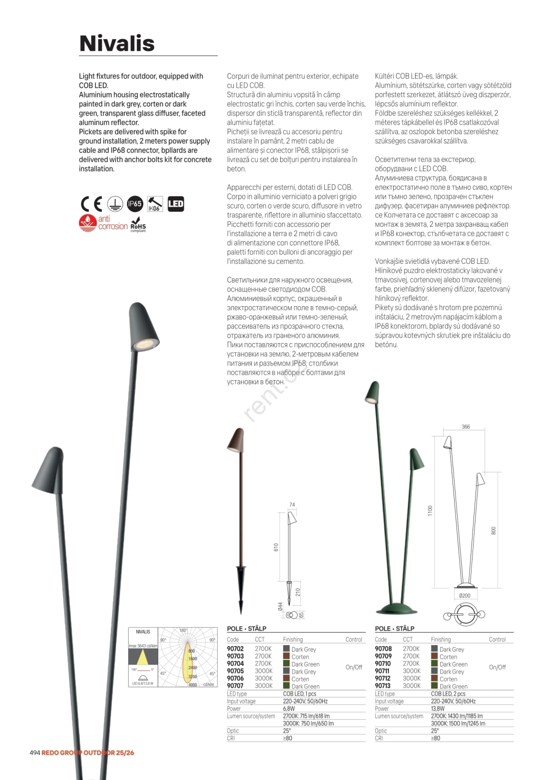 • Redo 90707 - LED Venkovní lampa NIVALIS LED/6,8W/230V 3000K 82 cm IP65 zelená
