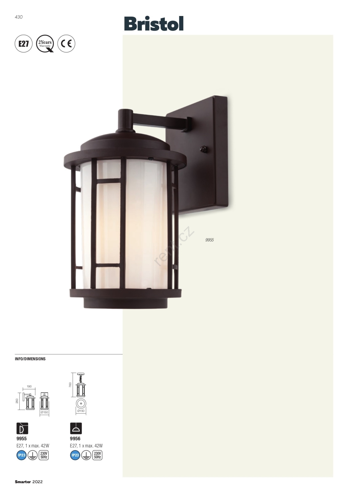 Redo 9956 - Venkovní lustr na řetězu BRISTOL 1xE27/42W/230V IP23 charakterizuje pěkný design a funkční provedení.  Do svítidla je určena žárovka s paticí E27. Zde si můžete koupit další žárovky za výhodnou cenu. Získáte tak zajímavý doplněk do svého domova.