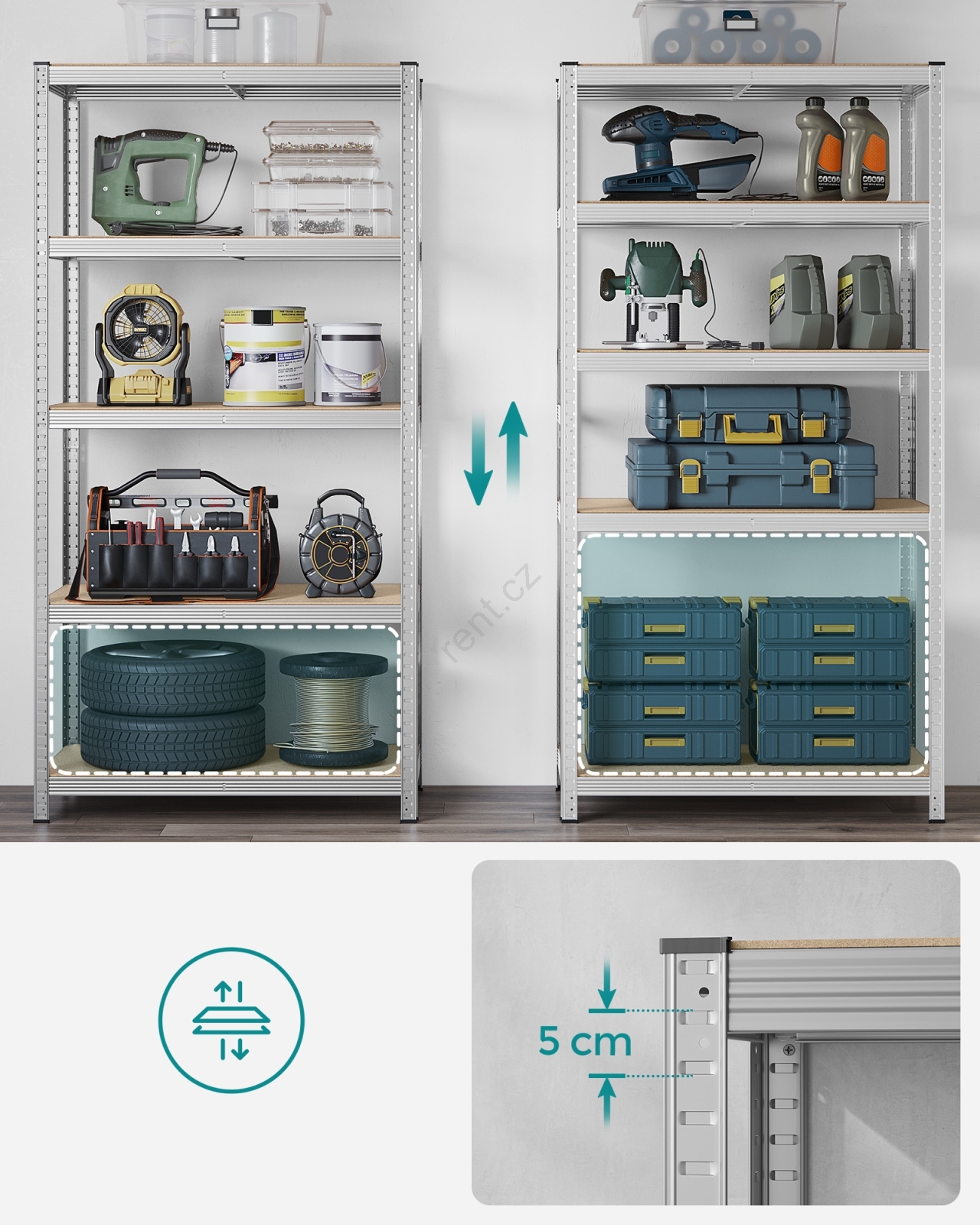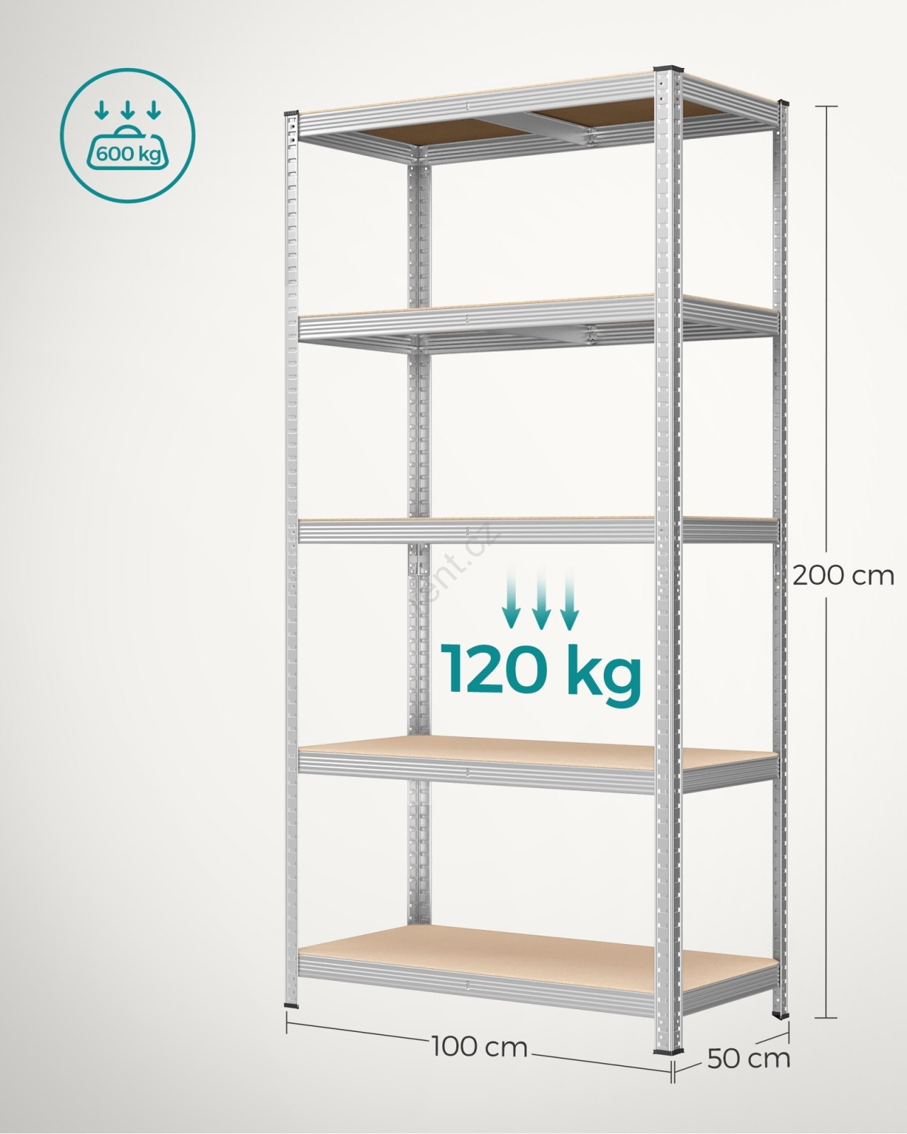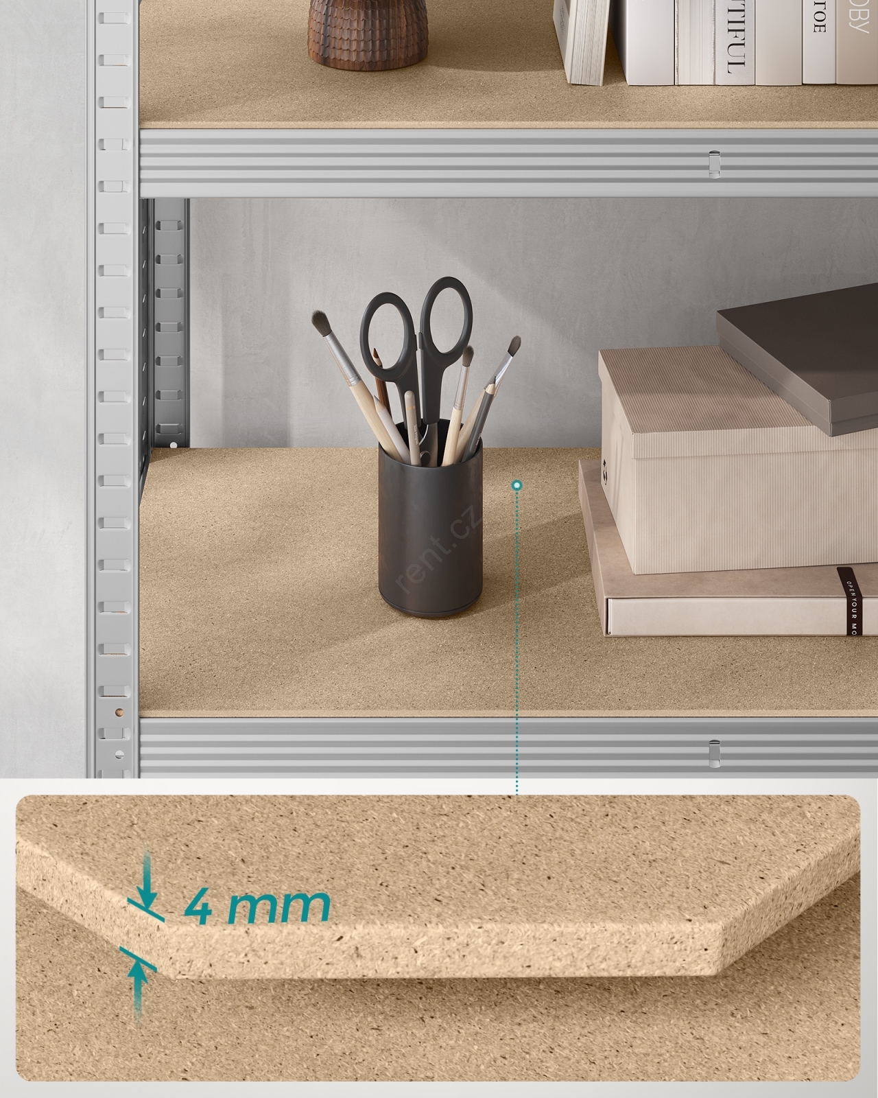 • Každá police unese až 120 kg a bezpečně unese barvy, nářadí a fitness vybavení.