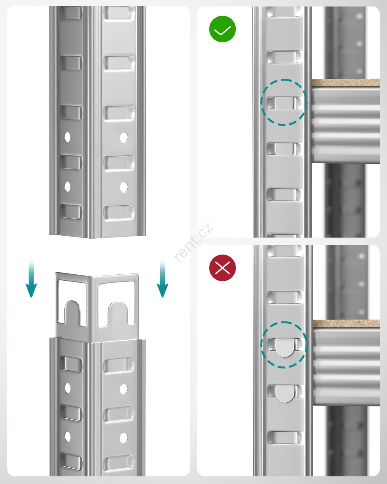 • Součástí balení je sada proti převrácení, která vám pomůže upevnit polici ke zdi, aby byl regál stabilnější a bezpečnější.