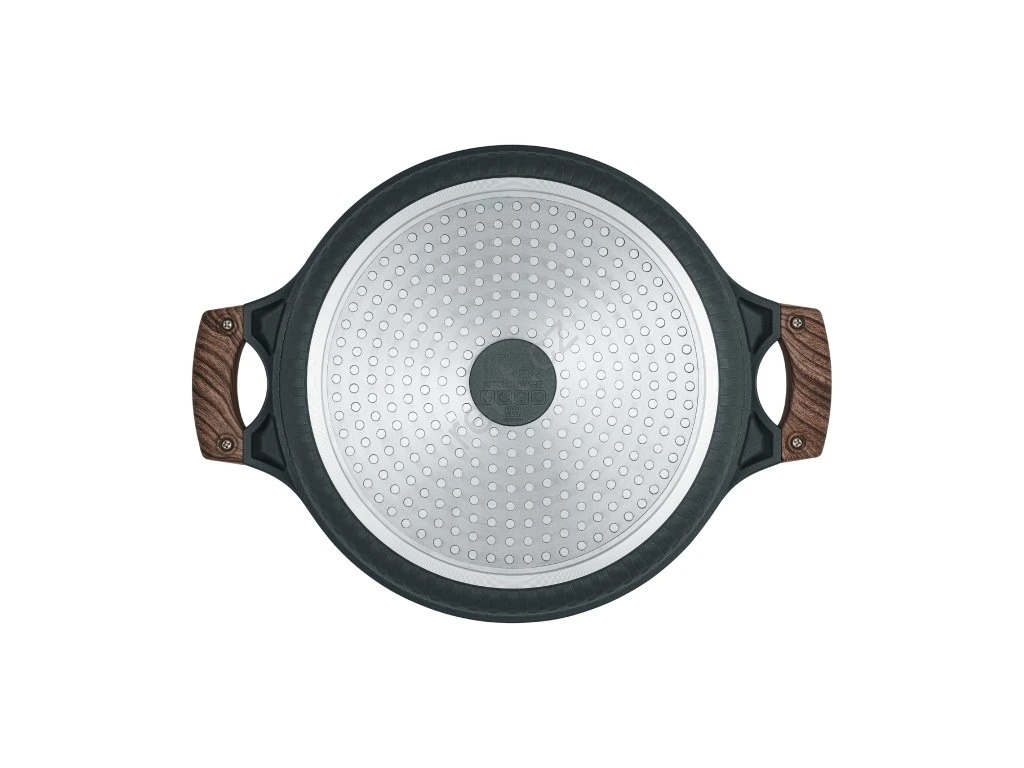 • Průměr 28 cm a objem 4,1 litru nabízí ideální kapacitu pro přípravu jídel pro celou rodinu, přičemž litý hliník zajišťuje rychlý přenos tepla a stabilní výkon na všech typech varných desek.