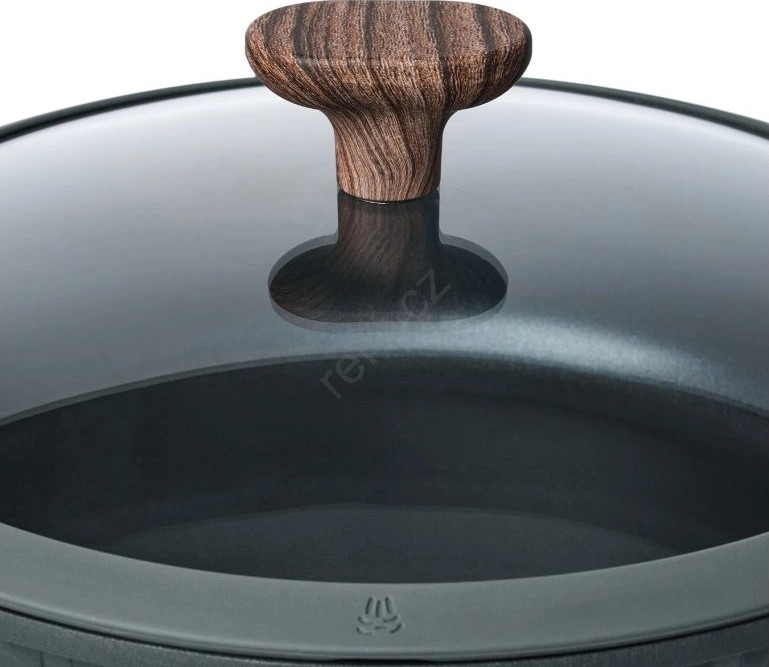 • Součástí balení je odolná skleněná poklice se silikonovým lemem a otvorem pro únik páry, která efektivně udržuje teplo uvnitř a umožňuje kontrolu průběhu vaření.