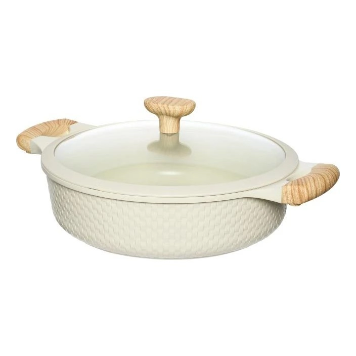 • Průměr 28 cm a objem 4,1 litru nabízí ideální kapacitu pro přípravu jídel pro celou rodinu, přičemž litý hliník zajišťuje rychlý přenos tepla a stabilní výkon na všech typech varných desek.