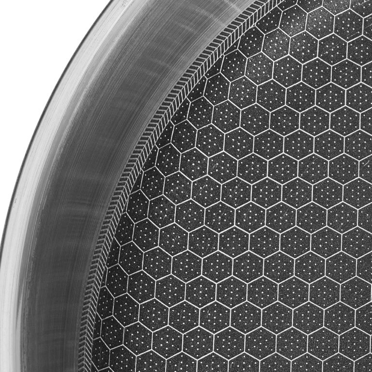 • Vnitřní povrch tvoří účinný nepřilnavý povlak s unikátním voštinovým vzorem, který minimalizuje připékání potravin a zároveň výrazně usnadňuje následné čištění.