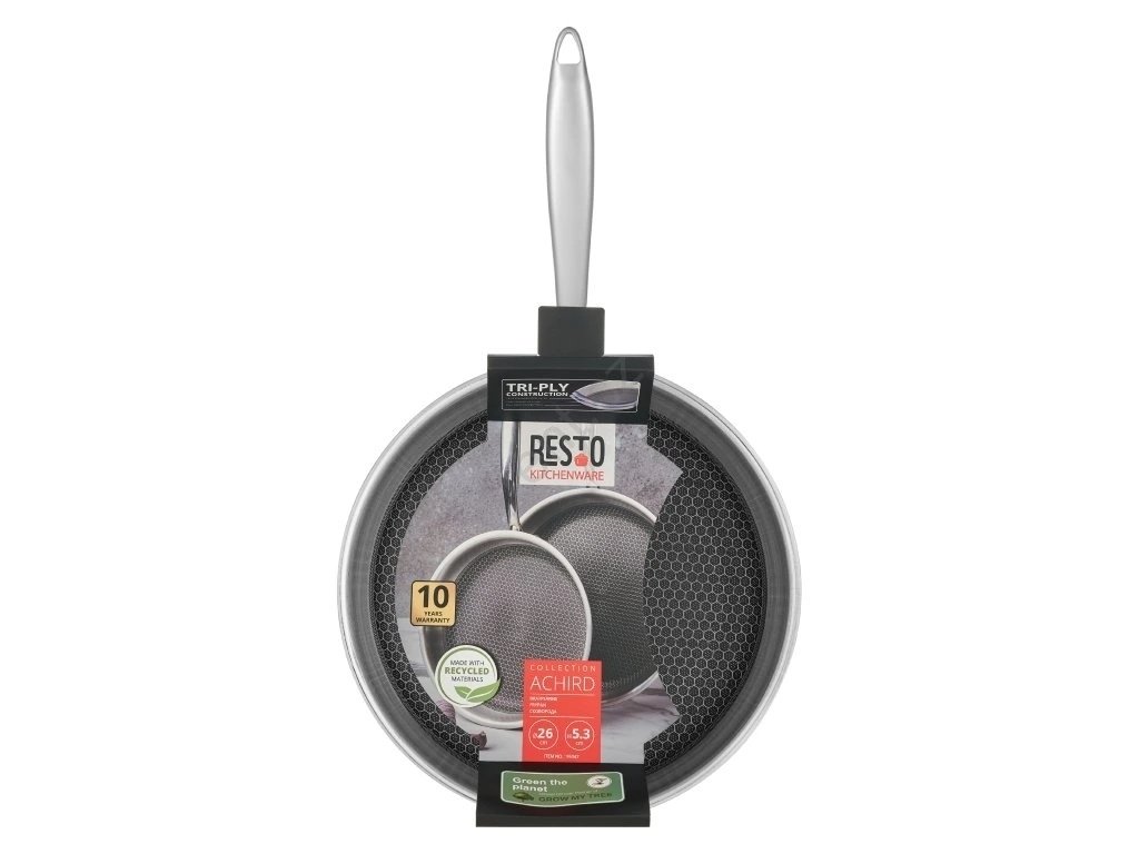 • Tato pánev z prémiové řady Achird je navržená pro každodenní i profesionální vaření a díky špičkovému třívrstvému zpracování TRI-PLY (nerez-hliník-nerez) poskytuje mimořádně rychlé a rovnoměrné výsledky při smažení i restování.