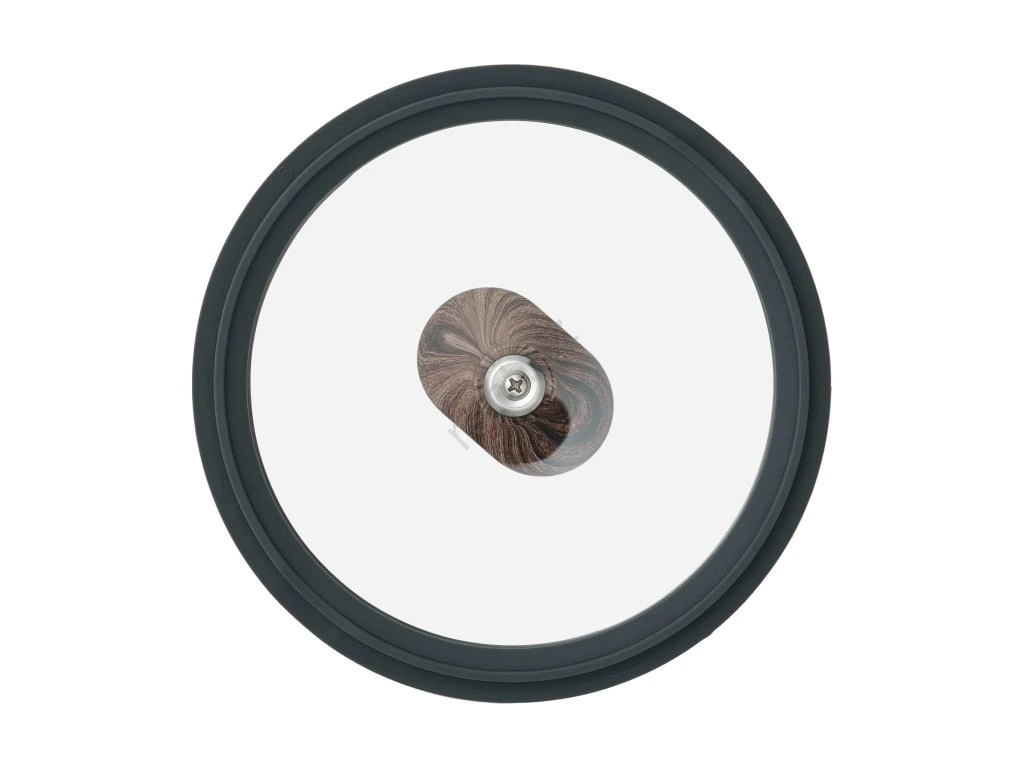 • Součástí je průhledná skleněná poklice se silikonovým lemem a otvorem pro únik páry, která umožňuje kontrolu vaření bez nadzvedávání.