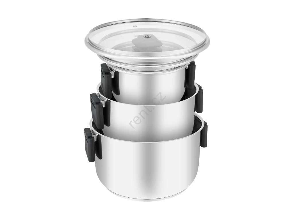 • Velikosti hrnců: 16 x 9 cm (1,8 l), 20 x 11,5 cm (3,2 l), 24 x 14 cm (5,8 l).