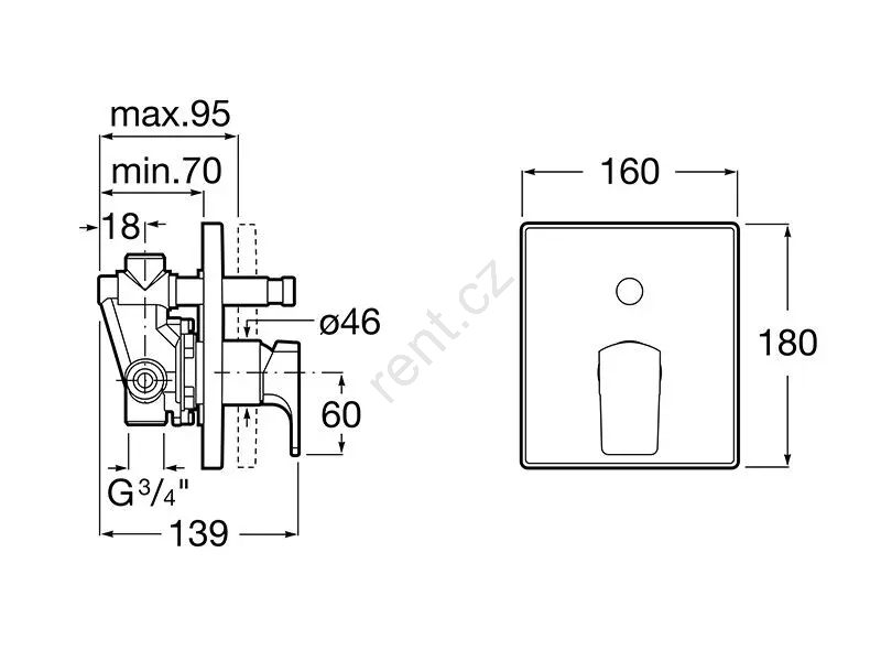• Nástěnná sprchová baterie pro podomítkovou instalaci.