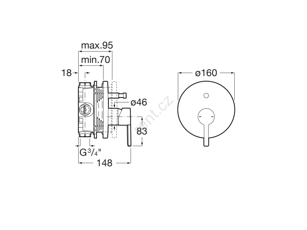 • Nástěnná sprchová baterie pro podomítkovou instalaci.