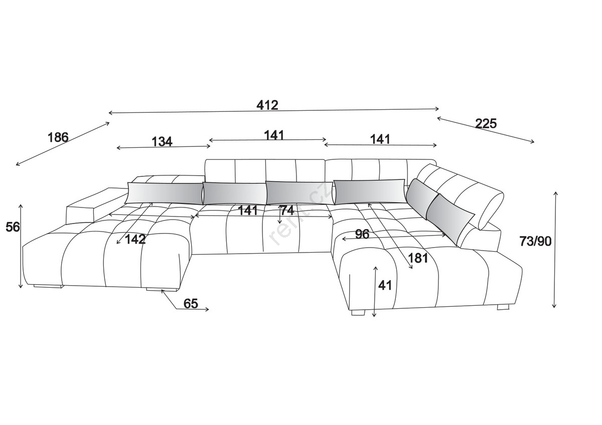 • Pohovka je vybavena čtyřmi nastavitelnými opěrkami hlavy, umožňujícími individuální polohování pro ještě větší pohodlí.