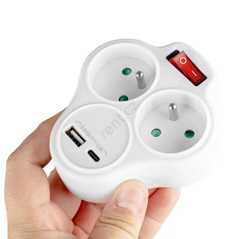 Rozbočovací zásuvka s vypínačem 2Z + USB-C + USB-A