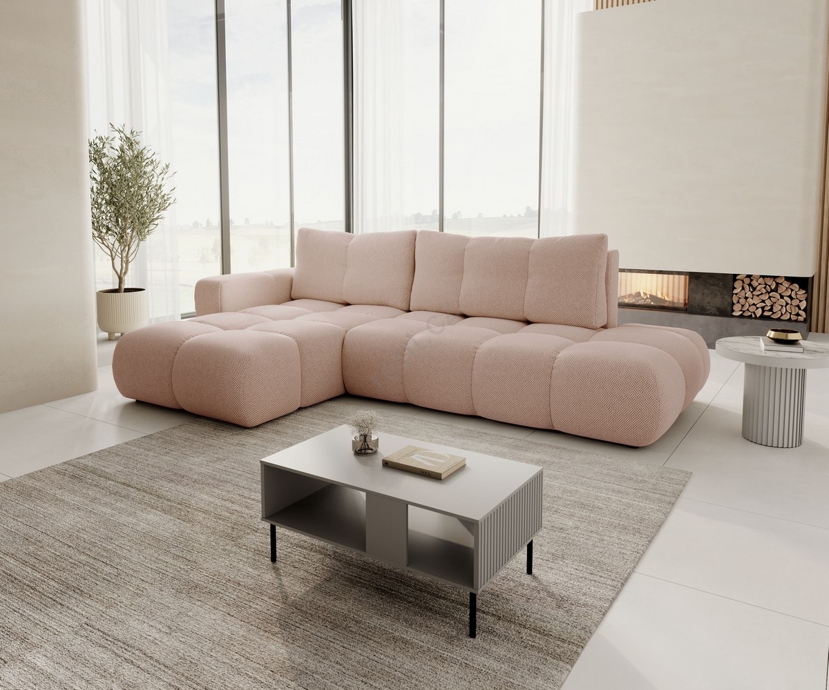 • Rozkládací rohová čalouněná sedací souprava s úložným prostorem do L ALMADA pravá růžová