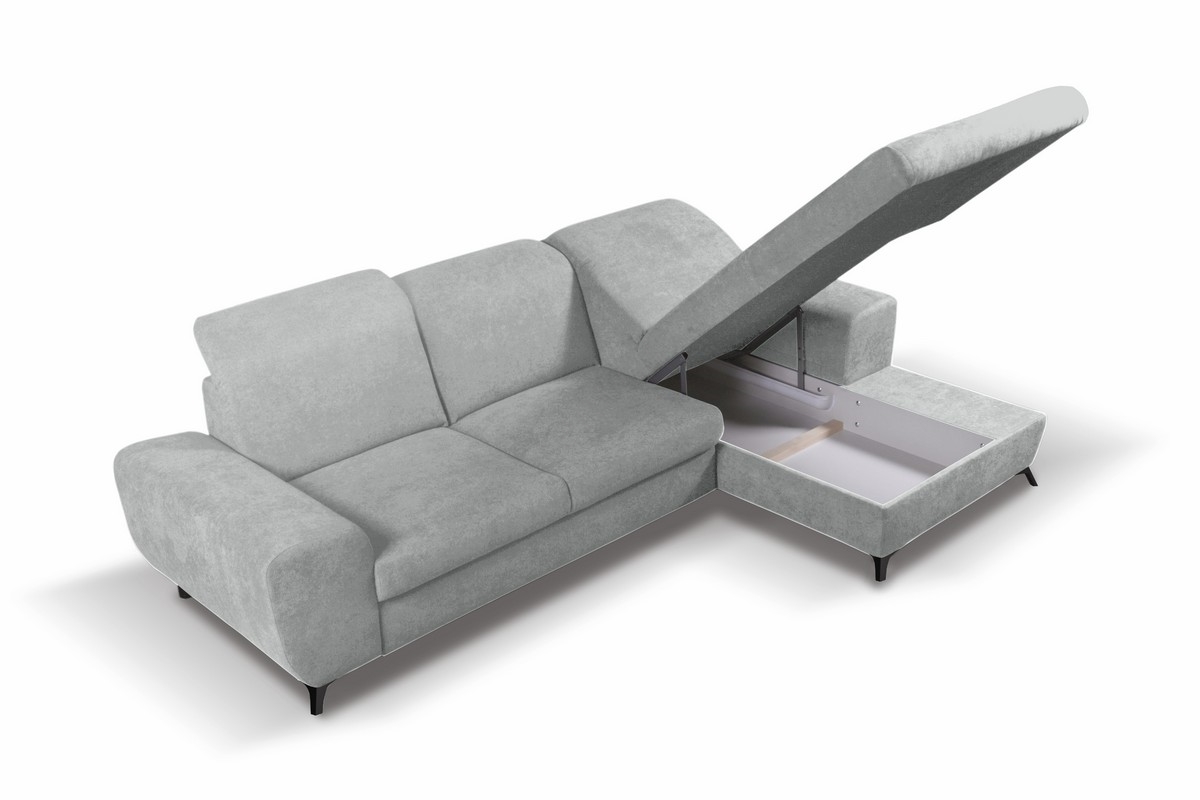 • Rozkládací rohová čalouněná sedací souprava s úložným prostorem do L ALTA pravá šedá