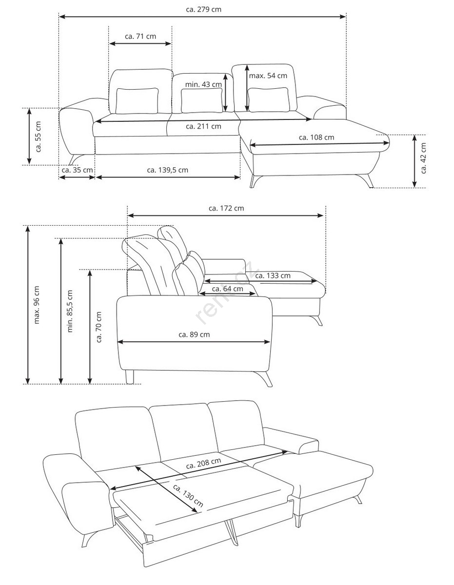 • Díky funkci lůžka (typu delfín) se dá snadno přeměnit na pohodlný prostor na spaní.