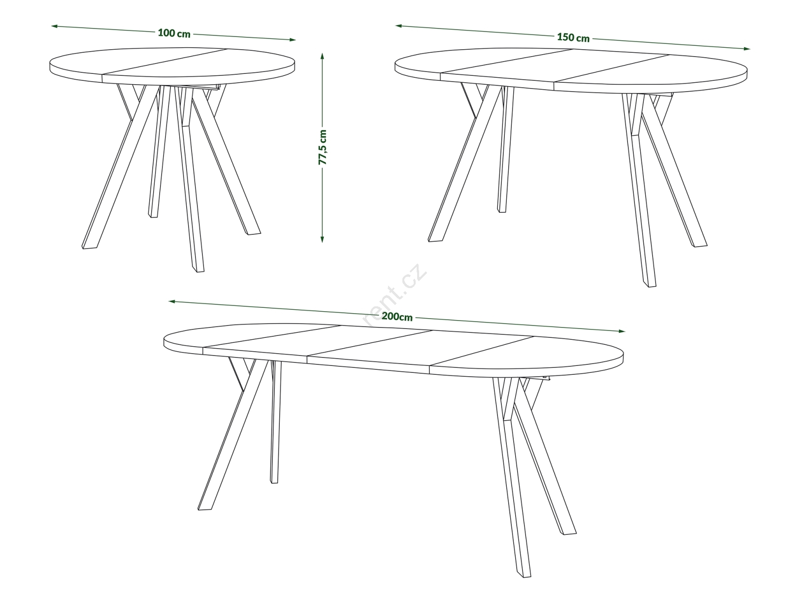 • Rozměr po rozložení stolu: 200 x 100 cm a 150 x 100 cm.