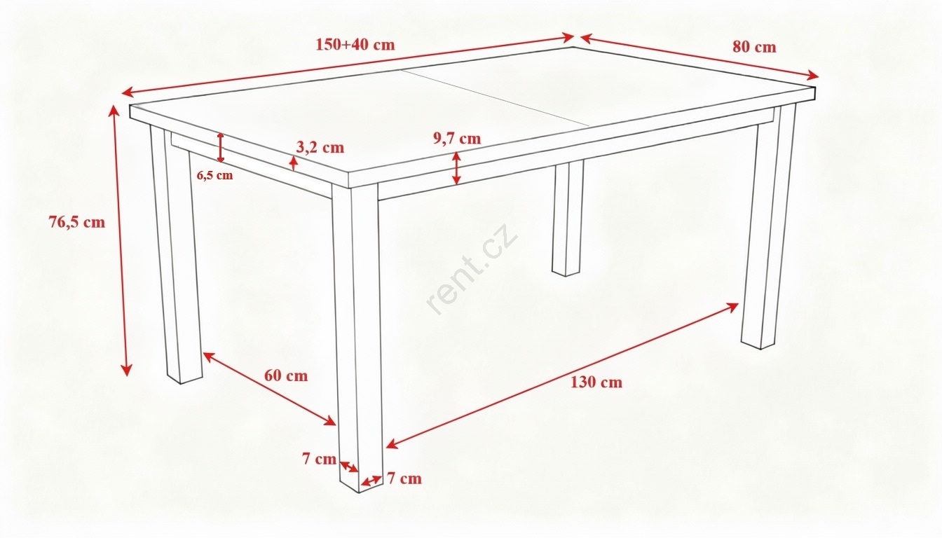 • Rozměr po rozložení stolu: 190 x 80 cm.