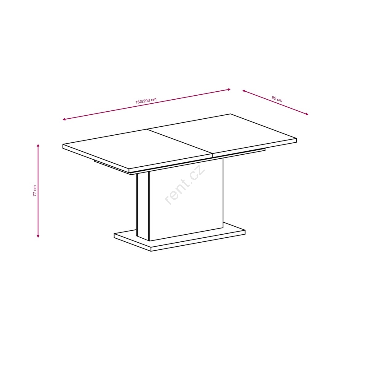 • Délka rozloženého stolu: 200 cm.