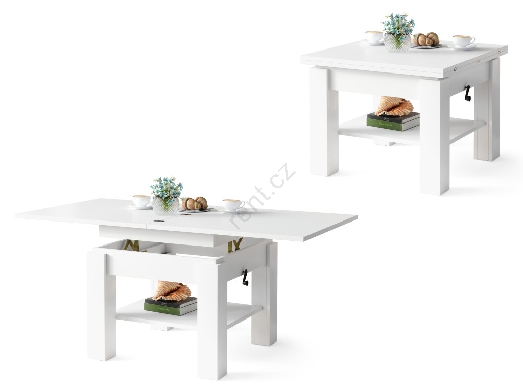 Rozkládací konferenční stůl se zvedací deskou CALEB 75/150x75 cm bílá