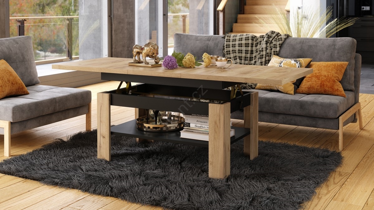 Rozkládací konferenční se zvedací deskou ROY 130/170x65 cm dub craft/černá